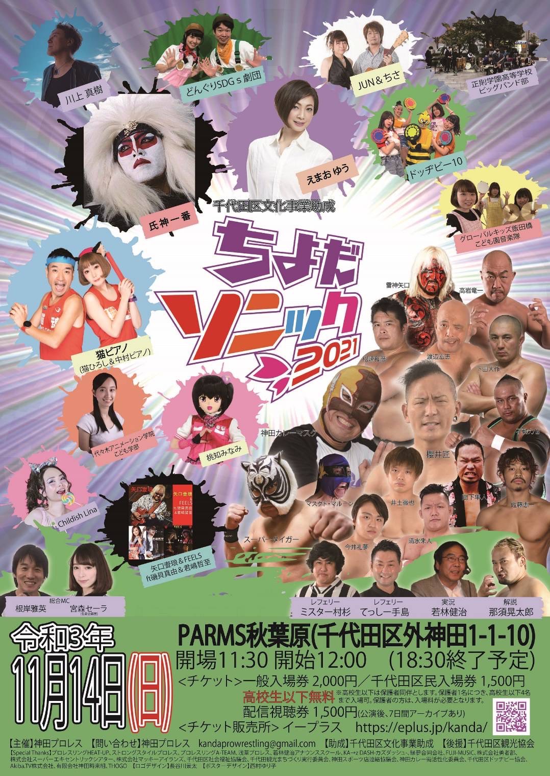 猫ひろし出演情報 ちよだソニック2021 開催日時:2021年11月14日(日)12時~18時30分(予定) 場所:PARMS秋葉原(千代田区外神田1-1-10) 助成:千代田区文化事業助成 主催:神田プロレス 入場チケット:高校生以下入場無料 一般2000円 千代田区民1500円 配信チケット:1500円(生配信後、7日間アーカイブあり) スポンサードリンク Facebook Google+ B!はてな Twitter Pocket