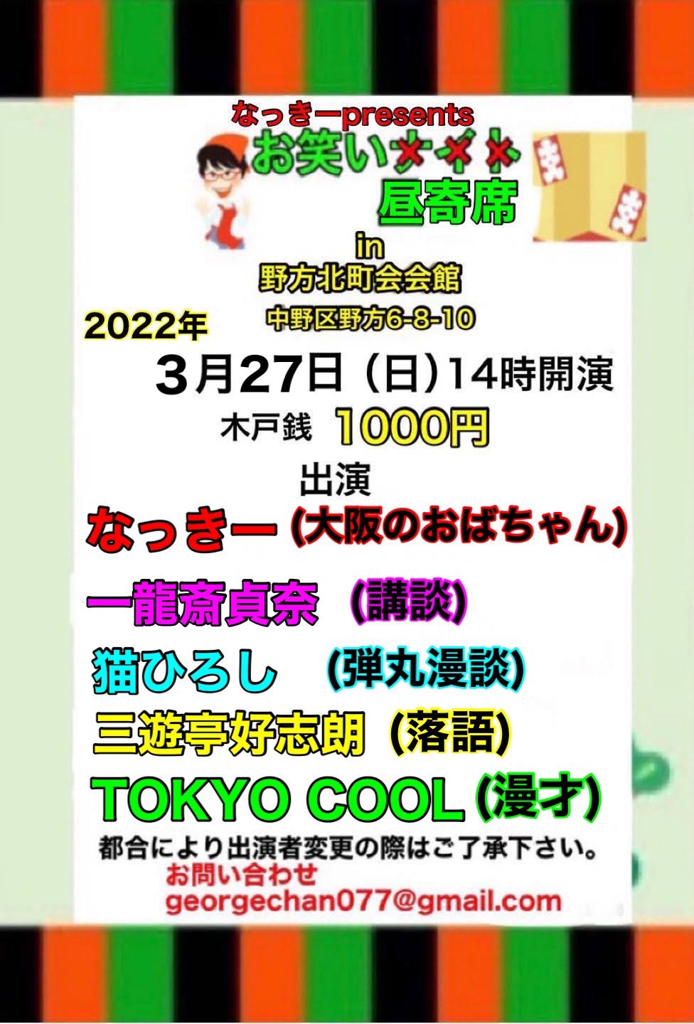 3月27日(日) 14時開演 木戸銭 1000円 会場 野方北町会会館