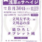 8月30日土曜日 第10回浅草のサヘイジ ~立川左平次落語会~ 開場18時 開演18時半 終演21時 浅草東洋